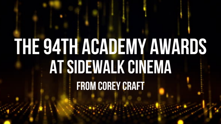 Join us at Sidewalk on Sunday, March 27, to watch the Academy Awards! We’ll be hosting a watch party along with a FREE, LIVE Academy-Award Edition Podcast recording of Sidetalks, the official, film-centric podcast of Sidewalk Film. RSVP here.