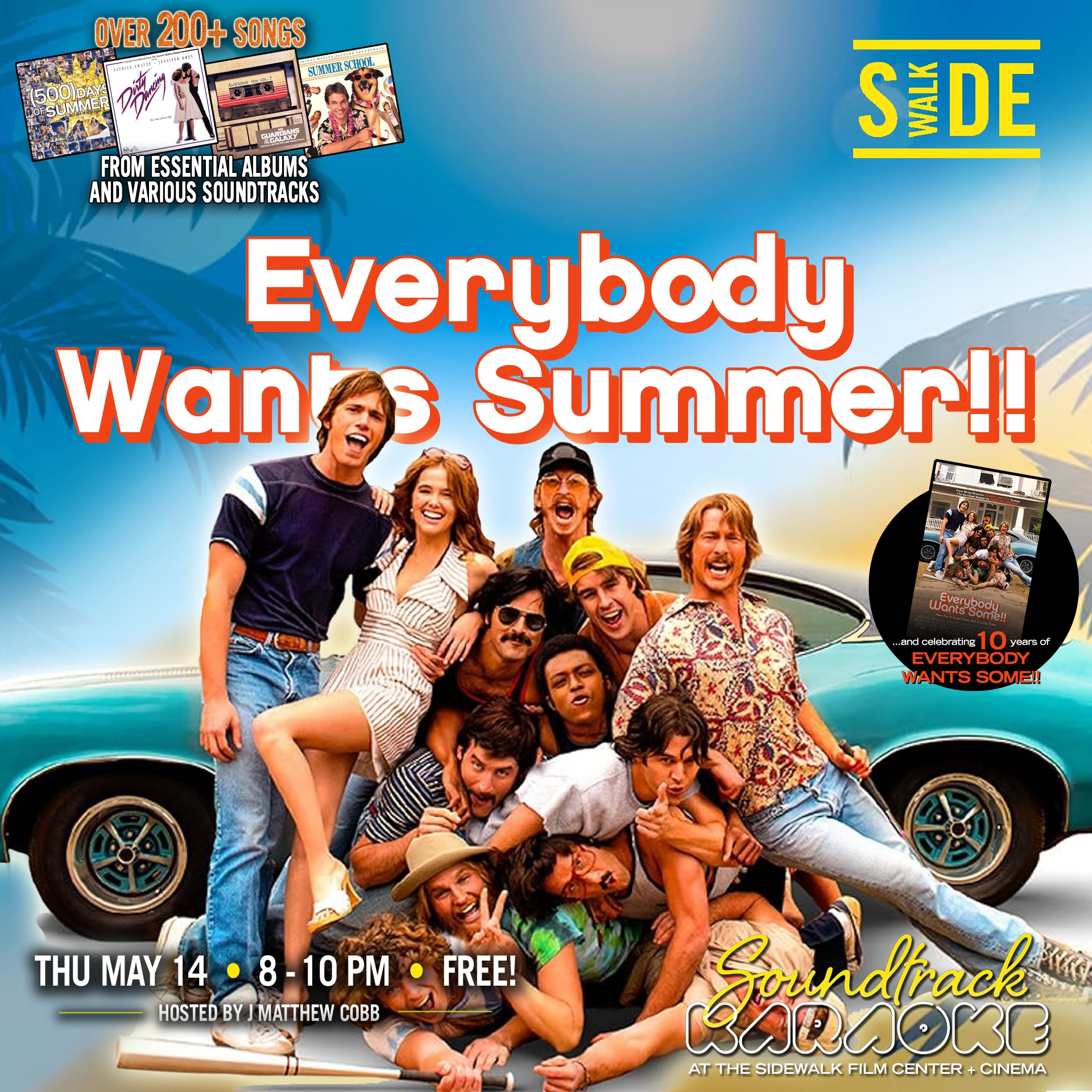 Join us at Soundtrack Karaoke for a night full of summer vibes and…BEACH! Celebrating the 10th year anniversary of the 2016 film, Everybody Wants Some and other popular summer-themed blockbusters and beloved classics. With over 200+ songs to choose from, including music from motion picture soundtracks like Dirty Dancing, Barbie, Cocktail, Fast Times at Ridgemont High, Baywatch, Guardians of the Galaxy, (500) Days of Summer and many more.
