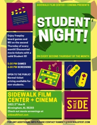 Join us for the best deals of the year on 2026 Festival VIP Passes (limited quantity), Cinema Memberships, movie posters, merch, gift cards, and more! We’re also bringing back the popular Blind Date with a DVD bundles and—new this year—Festival Spotlight Night Ticket Packages! All deals are in-person only at the Sidewalk Cinema from Friday, November 28th through Sunday, November 30th, with remaining deals going online for Cyber Monday. ✦ Special Appearance: Mr. & Mrs. Santa: Join us Friday from 09:30am–12:30pm for photos with Mr. and Mrs. Santa, brought to life with the help of a beloved member of the Food Giant Hueytown family. Photos will be taken by David Smith of DSmithImages Photography. ✦ Friday Morning Cartoons — Holiday Edition: Enjoy light breakfast options for all ages, a free cereal bar, and a Bloody Mary & Mimosa bar for adults, featuring Bloody Mary mix from LeNell’s Beverage Boutique in Norwood. Relax and watch beloved classic cartoons playing on all the lobby screens throughout the morning. ✦ This event is free, but reservations are strongly encouraged.