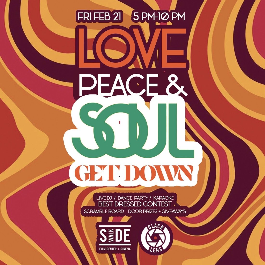*This is a free event. Reservations are strongly recommended but not required. SEATING IS FIRST COME, FIRST SERVED.* It’s time to GET DOWN to Sidewalk for the LOVE, PEACE & SOUL Get Down. Get on board ? ? for a groovy ? celebration during Black History Month complete with ‘Soul Train’ vibes + trends honoring the best of R&B, soul, funk and hip-hop. Featuring: Live DJ w/ dance party + Soul Train Line segments • “Soulful” Karaoke • Scramble board • Lobby programming • Best dressed contest (with prizes) • Specialty cocktails + mocktails