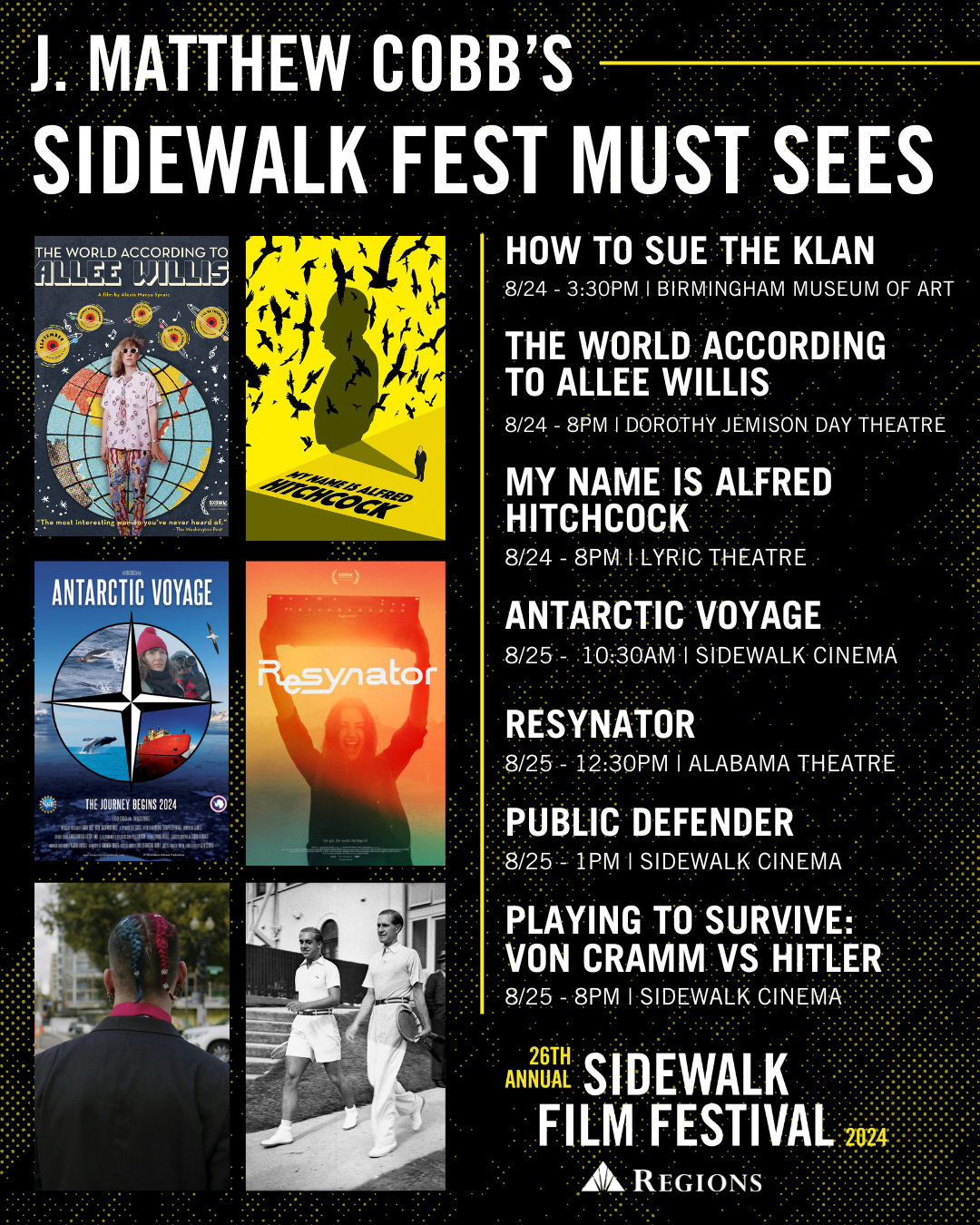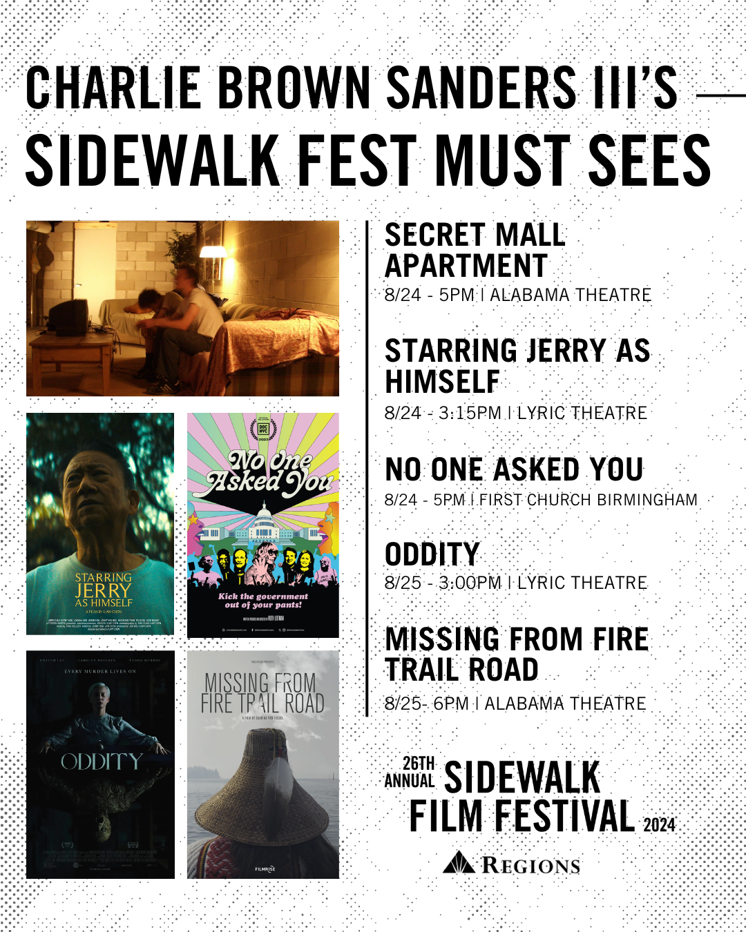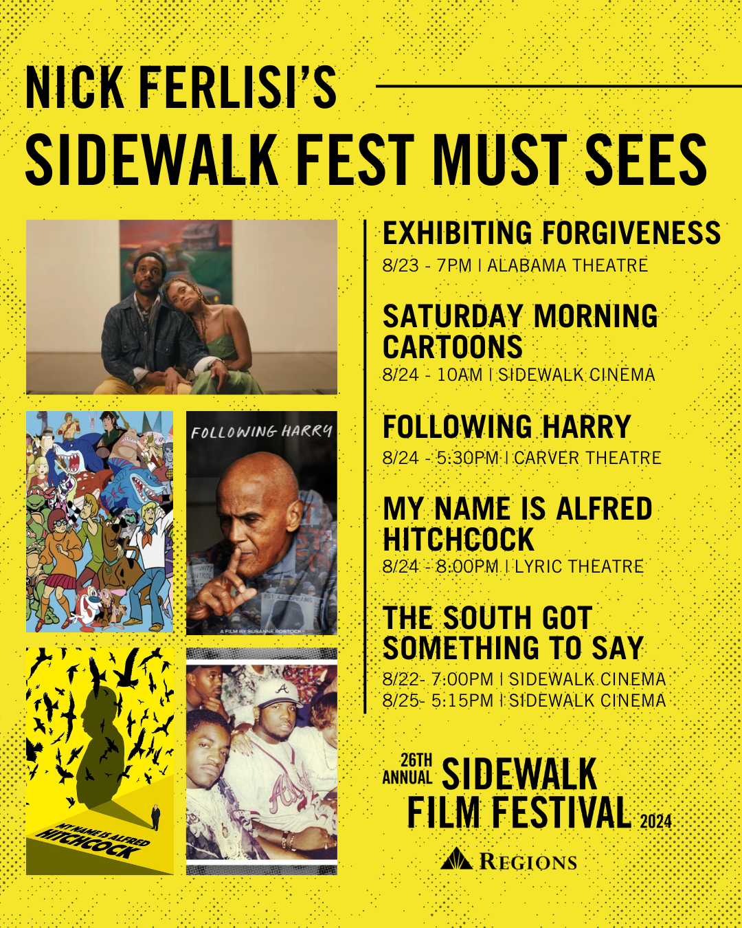 The 26th Annual Sidewalk Film Festival presented by Regions Bank is right around the corner and our staff couldn’t be more excited! We’ve shared graphics of some of their “must-see” titles on our social media and now we’re putting their picks all in one convenient place!